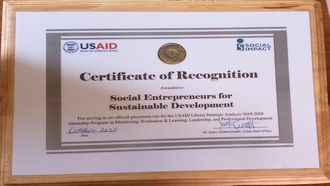 Being one of the award-receiving institutions, recognized for participating in LSA’s leadership and professional development training, Social Entrepreneurs for Sustainable Development (SESDev) has made a striving effort in contributing to Liberia’s growth and development.